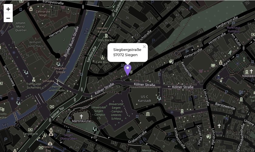Kartendaten lassen sich einfach mit den Adressdaten ausgeben.